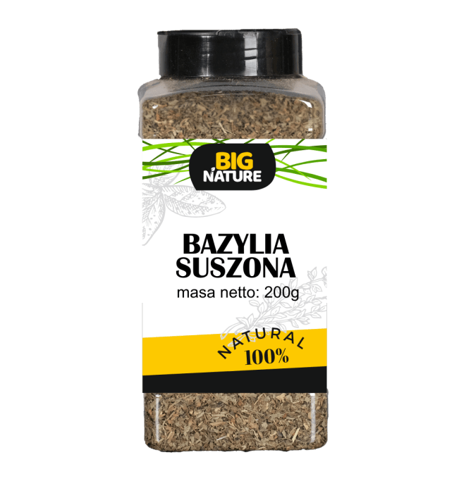 Bazylia suszona to aromatyczna przyprawa, którą otrzymuje się z liści i kwiatostanów tej rośliny. Bazylia jest aktywnie wykorzystywana w wielu kuchniach świata: gruzińskiej, greckiej, francuskiej, włoskiej. Bazylia nadaje się zarówno do dań domowych, jak i restauracyjnych, wnosząc do nich jasne nuty. Bazylia jest bogata w witaminy, więc jest nie tylko smaczna, ale i zdrowa. Proces suszenia zachowuje fitoncydy, witaminy A, B i C oraz fruktozę. Uważa się, że regularne spożywanie bazylii, nawet w postaci suszonej, pomaga normalizować ciśnienie krwi, poprawia trawienie, wzmacnia układ nerwowy, oczyszcza naczynia krwionośne ze złego cholesterolu i uelastycznia ich ściany.