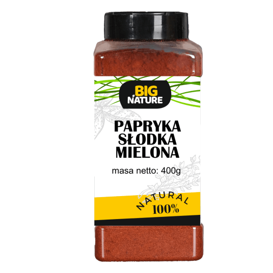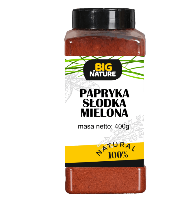 Papryka słodka mielona to uniwersalna przyprawa pochodząca ze słodkiej papryki. Ma charakterystyczny korzenny aromat i nadaje potrawom czerwonawy kolor. Słodka czerwona papryka dodaje pikanterii potrawom z mięsa, ryb i wędlin. Doskonale komponuje się z sosami, bulionami i zupami, konserwami rybnymi i warzywami.