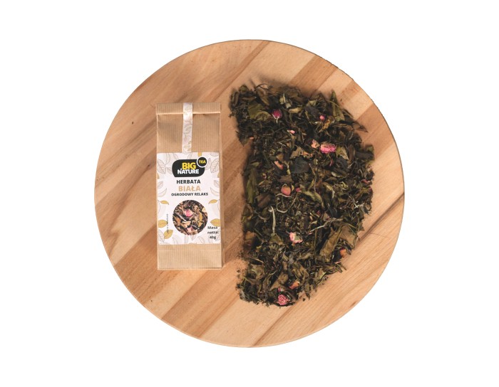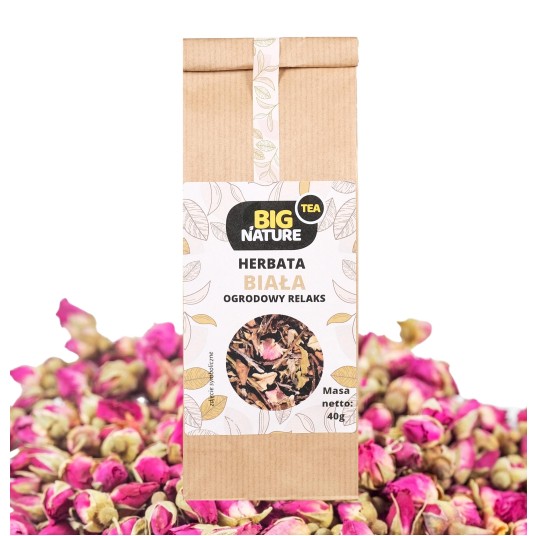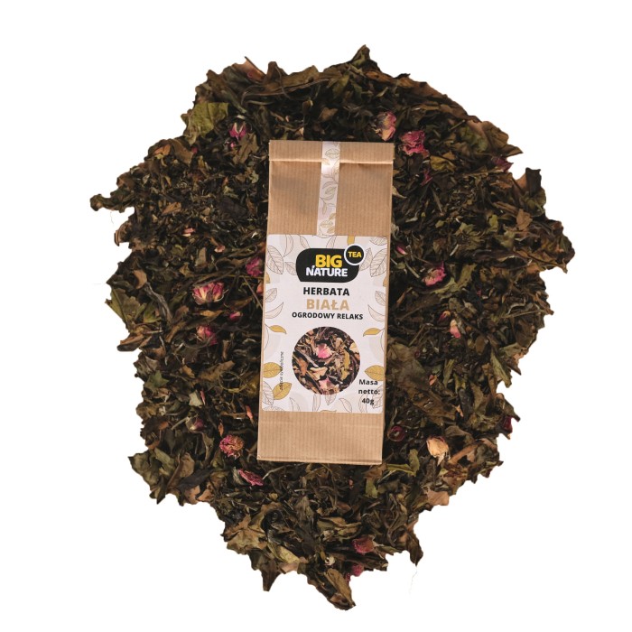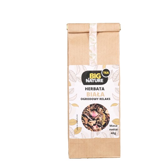 Opis: Opakowanie zawiera 40g białej herbaty "Ogrodowy Relaks".