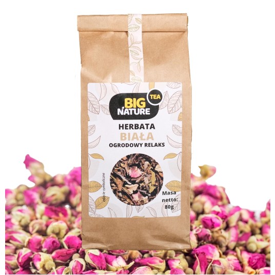 Opis: Opakowanie zawiera 80g białej herbaty "Ogrodowy Relaks".