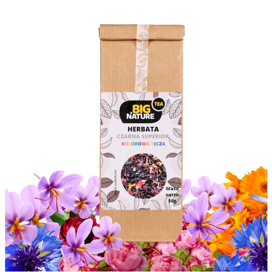 Opis: Opakowanie zawiera 50g czarnej herbaty earl grey "Kolorowa Tęcza".