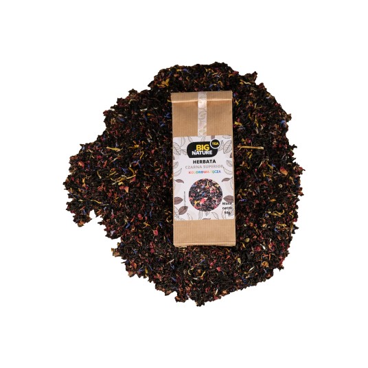 Składniki: herbata czarna, róża, nagietek, szafran, chaber kwiat, aromat.