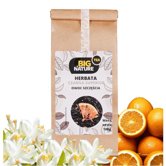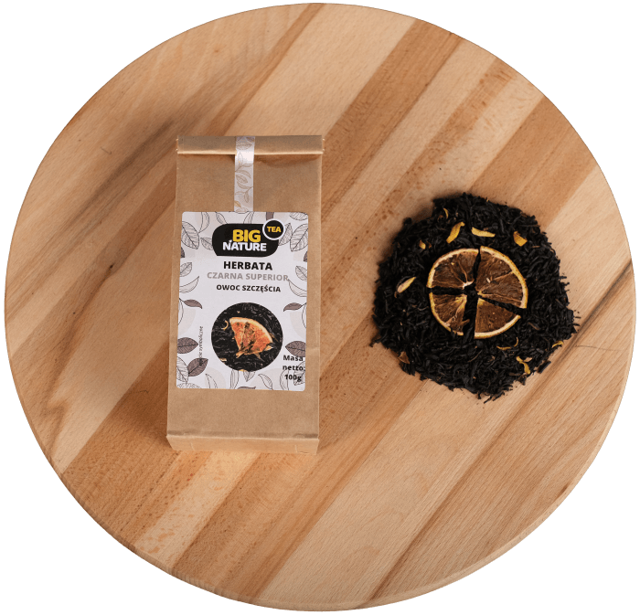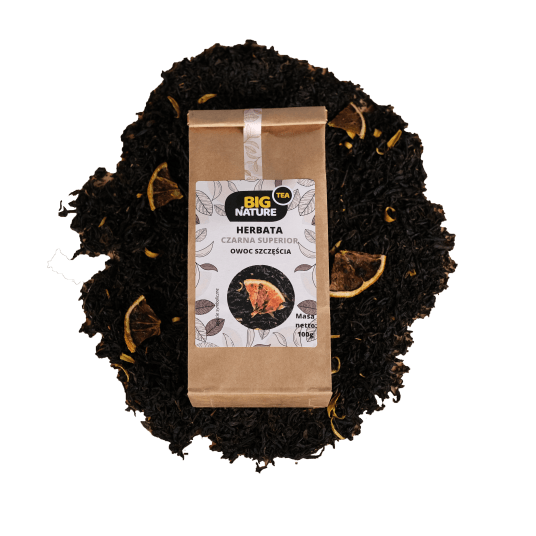 Opis: Opakowanie zawiera 100g czarnej herbaty earl grey "Owoc Szczęścia".