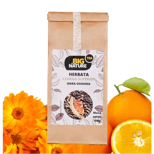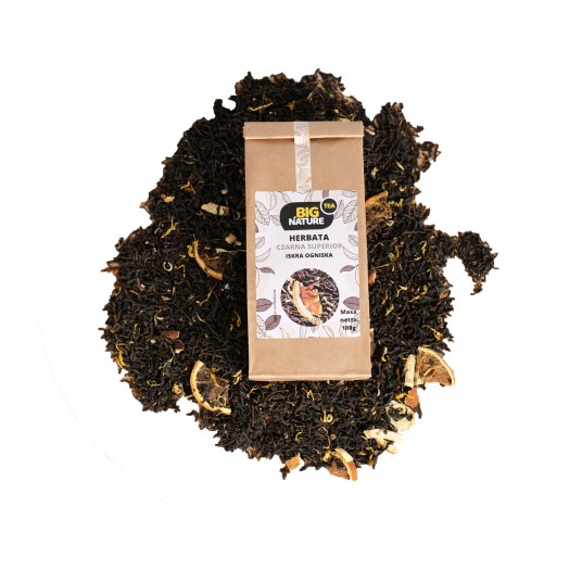 Opis: Opakowanie zawiera 100g czarnej herbaty superior "Iskra Ogniska".
