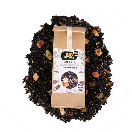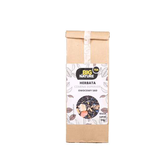 Opis: Opakowanie zawiera 50g czarnej herbaty superior "Owocowy Sad".