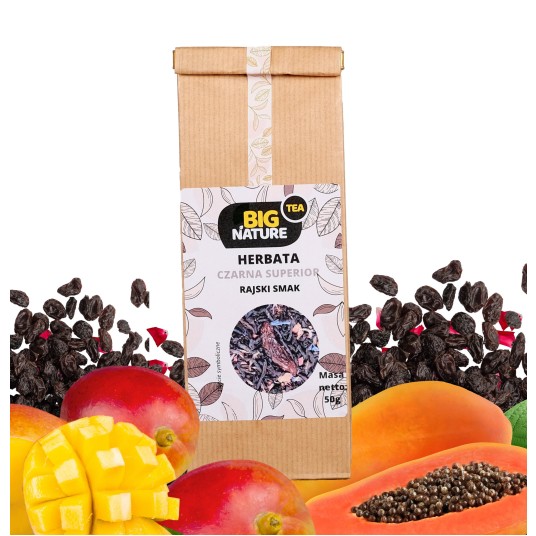 Poczuj odrobinę raju w czarnej herbacie Rajski Smak. Dodatek mango oraz papai nadaje naparowi zarówno egzotyczny zapach, jak i smak. Podczas transportu herbaty w XVIII wieku, ładunek z liśćmi zielonej herbaty został zalany wodą i sfermentował. Pomimo tego, Anglicy zdecydowali się wysuszyć liście i sprzedawać jako nowy gatunek, aby nie utracić całego zbioru. W ten sposób powstała wyjątkowa - czarna herbata.