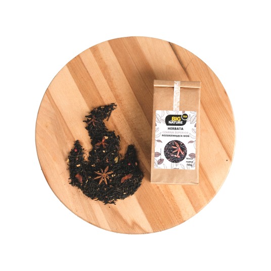 Opis: Opakowanie zawiera 100g czarnej herbaty superior "Rozgrzewająca Woń".