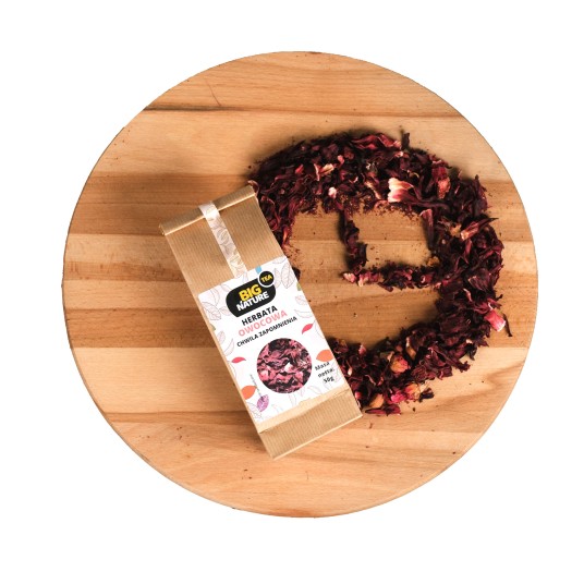 Składniki: hibiskus, truskawka liofilizowana, aromat, róża pąk.