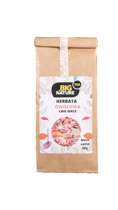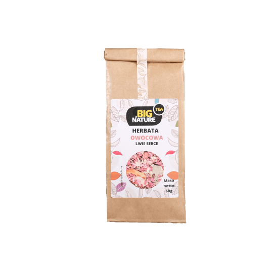 Opis: Opakowanie zawiera 60g owocowej herbaty "Lwie Serce".