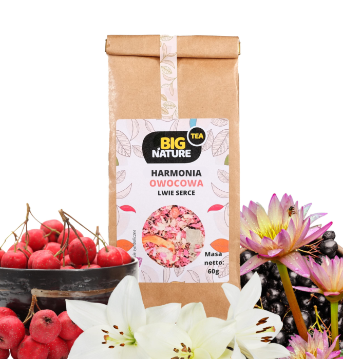 Opis: Opakowanie zawiera 60g owocowej herbaty "Lwie Serce".