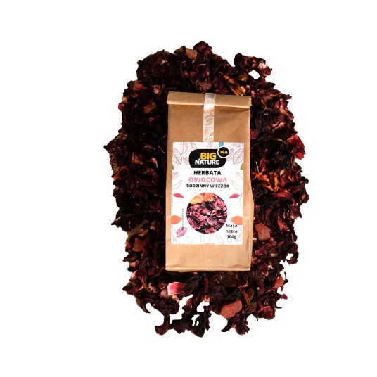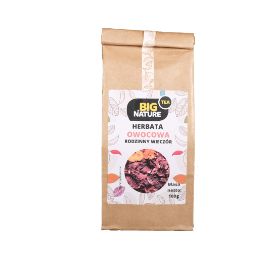 Opis: Opakowanie zawiera 100g owocowej herbaty "Rodzinny Wieczór".