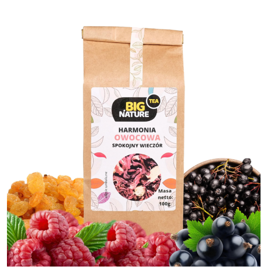 Zestawienie suszonych owoców maliny, aronii, porzeczki oraz rodzynki sprawiają, że herbata nabiera wyrazistego smaku. Idealna na spokojne wieczory. Herbaty owocowe są najbardziej różnorodnymi herbatami. Jest to spowodane szeroką możliwością wyboru owoców do jej stworzenia. Głównym składnikiem herbaty owocowej jest hibiskus. W Egipcie herbata z hibiskusa jest traktowana jako napój narodowy i to nią wita się gości.