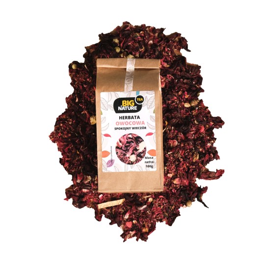 Opis: Opakowanie zawiera 100g owocowej herbaty "Spokojny Wieczór".