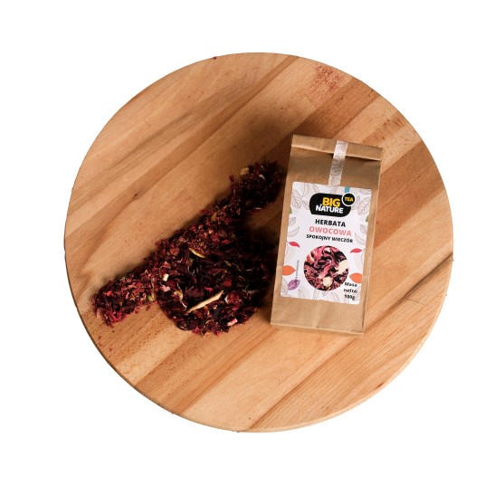 Opis: Opakowanie zawiera 100g owocowej herbaty "Spokojny Wieczór".