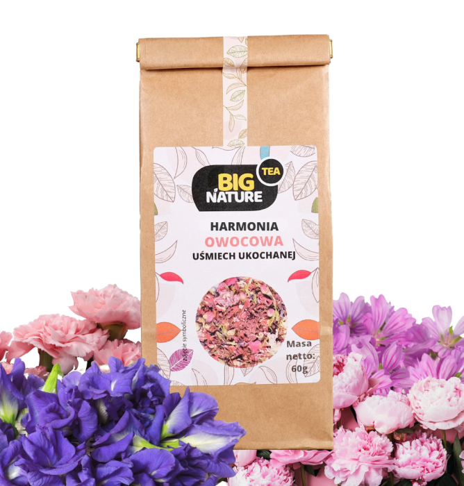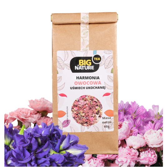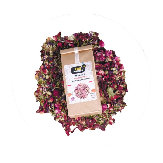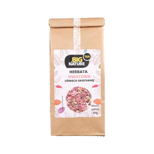 Opis: Opakowanie zawiera 60g owocowej herbaty "Uśmiech Ukochanej".