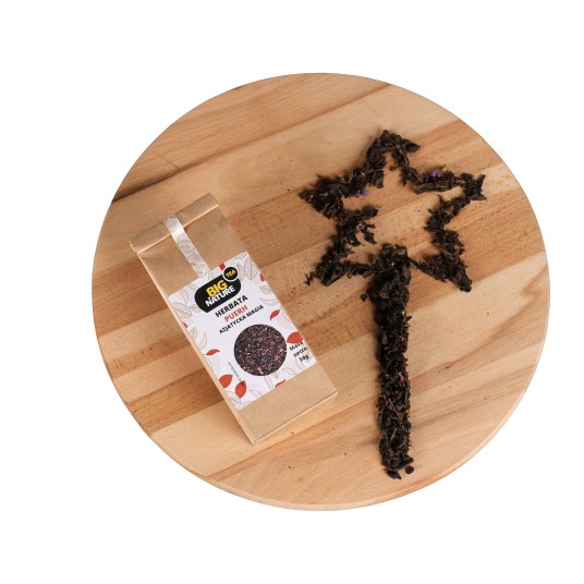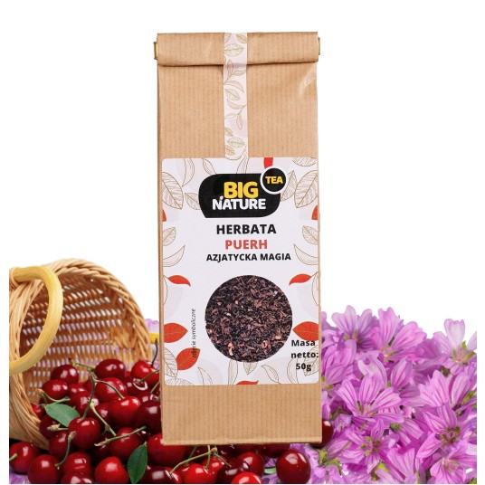 Składniki: herbata puerh, wiśnia, ślaz kwiat, róża płatek, aromat.