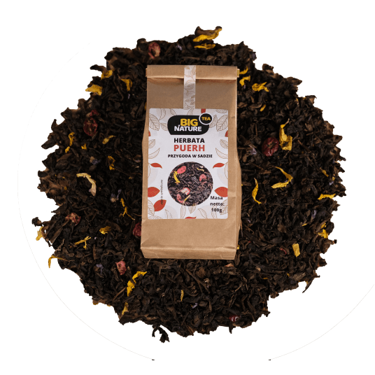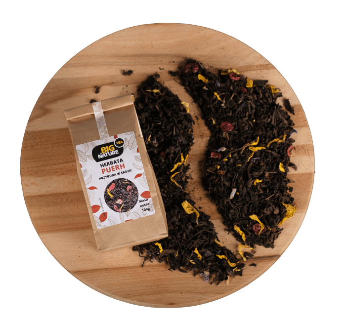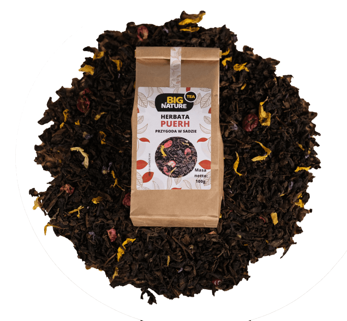 Opis: Opakowanie zawiera 100g herbaty "Puerh Przygoda w Sadzie".