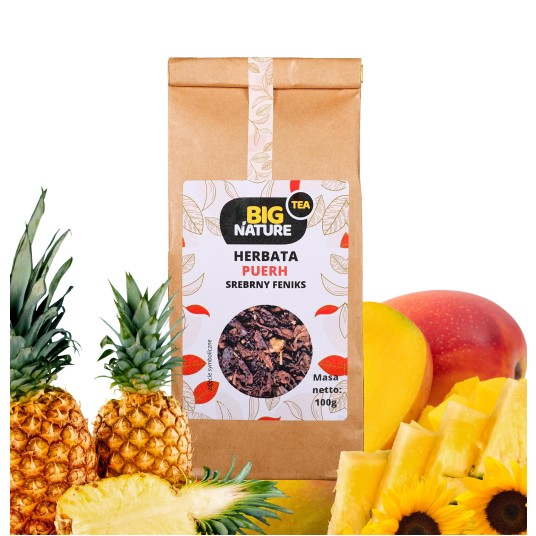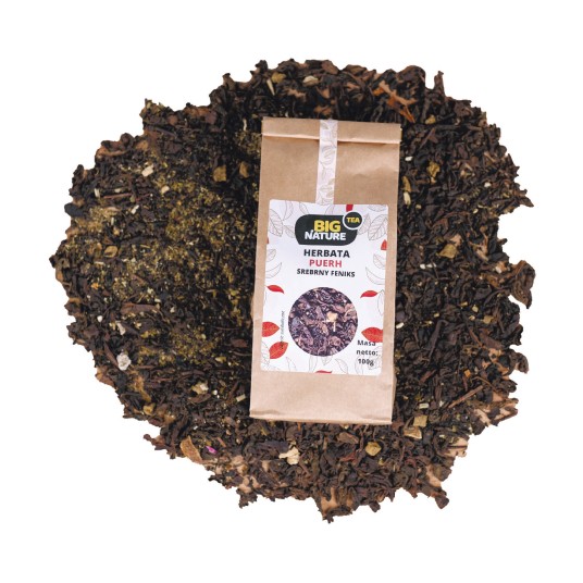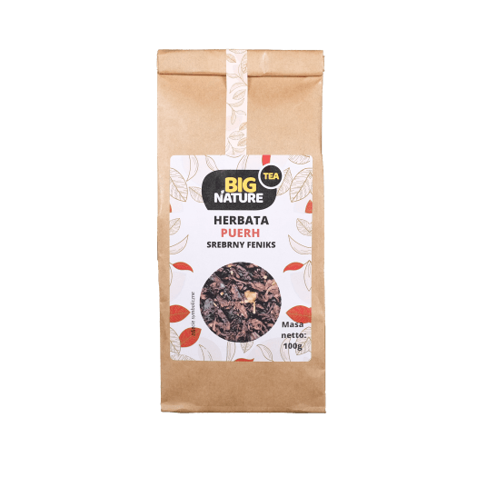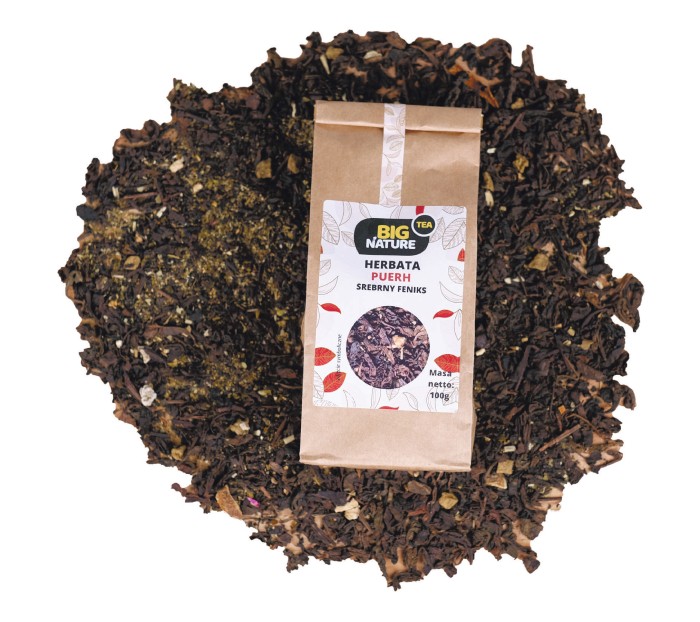 Opis: Opakowanie zawiera 100g herbaty "Puerh Srebrny Feniks".