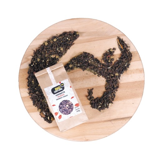 Składniki: herbata puerh, aromat, skórka pomarańczy, jabłko yerba mate.