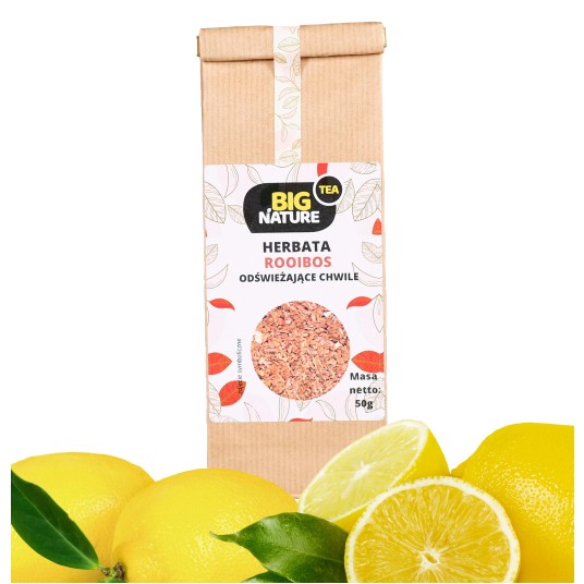 Wypróbuj niezwykle aromatyczną herbatę Rooibos Odświeżające Chwile. Jej cytrusowy smak i aromat podziałają orzeźwiająco na twoje zmysły!. Rooibos jest herbatą czerwoną znaną dopiero od 100 lat, co w porównaniu z innymi rodzajami herbat robi wrażenie. Herbata Rooibos w przeciwieństwie do reszty herbat nie rośnie na krzewie herbacianym, ani nie jest z nim spokrewniony.
