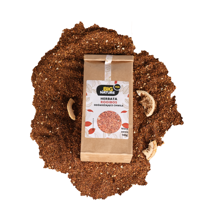 Opis: Opakowanie zawiera 100g herbaty "Rooibos Odświeżające Chwile".