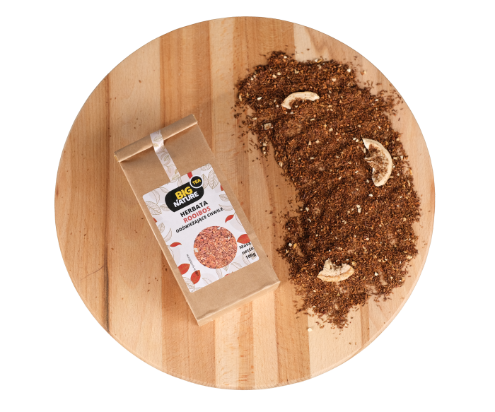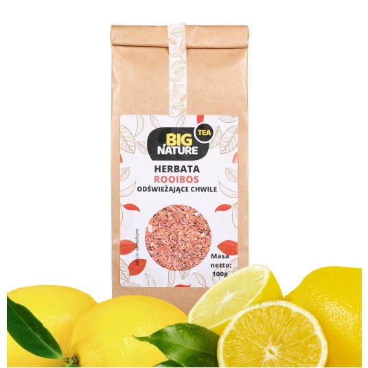 Opis: Opakowanie zawiera 100g herbaty "Rooibos Odświeżające Chwile".