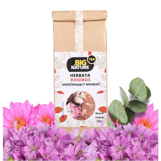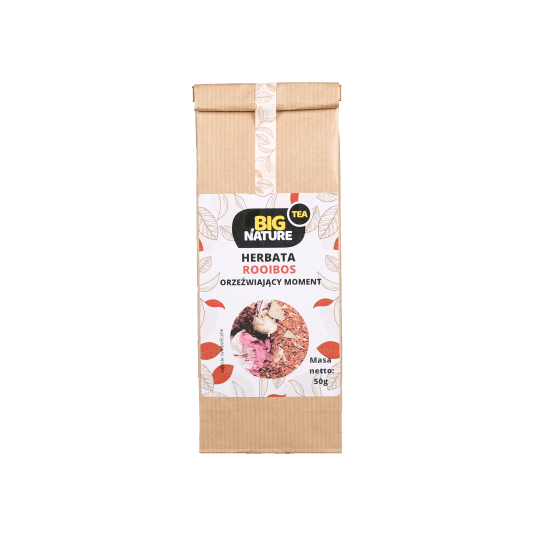 Opis: Opakowanie zawiera 50g herbaty "Rooibos Orzeźwiający Moment".