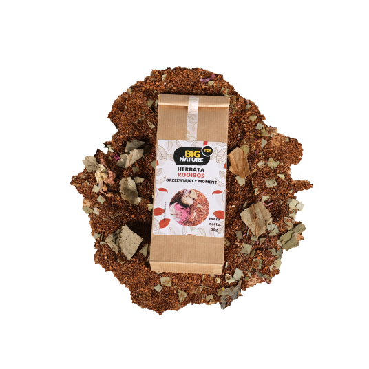 Opis: Opakowanie zawiera 50g herbaty "Rooibos Orzeźwiający Moment".
