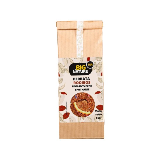 Opis: Opakowanie zawiera 50g herbaty "Rooibos Romantyczne Spotkanie".