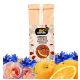 Składniki: rooibos, aromat, pomarańcz skórka i ćwiartka, róża płatek, bławatek.