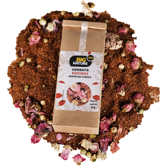 Opis: Opakowanie zawiera 50g herbaty "Rooibos Wspólne Chwile".