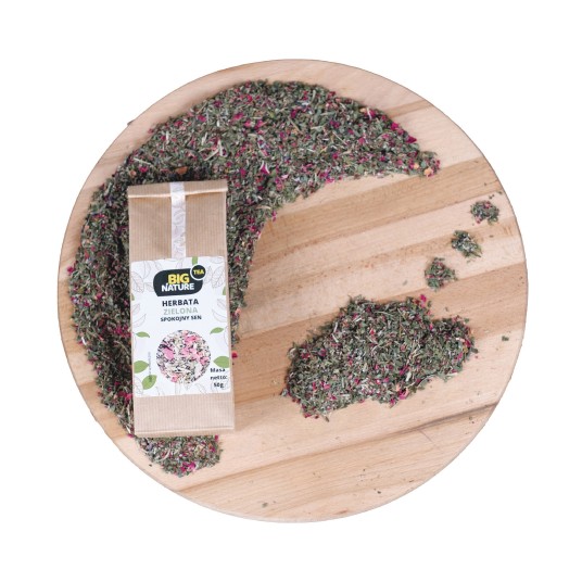 Herbata Spokojny Sen to mieszanka zielonej herbaty z miętą, melisą, różą oraz lawendą. Ma działanie wyciszające oraz uspokajające. Idealnie sprawdzi się na wieczorny relaks. Historia zielonej herbaty rozpoczyna się w XXVIII wieku p.n.e.. Jeden z cesarzy chińskich odpoczywając pod krzewem herbacianym, zauważył, iż kilka listków rośliny wpadło mu do miseczki z gorącą wodą. Gdy spróbował aromatycznego naparu, poczuł się nim zafascynowany. Zielona herbata jest zdrowsza od herbaty czarnej, a zarazem mniej popularna. W światowej produkcji zielonej herbaty dominują Chiny, kolejne są Japonia, Indonezja i Wietnam. Niesłodzona zielona herbata jest napojem o zerowej kaloryczności.