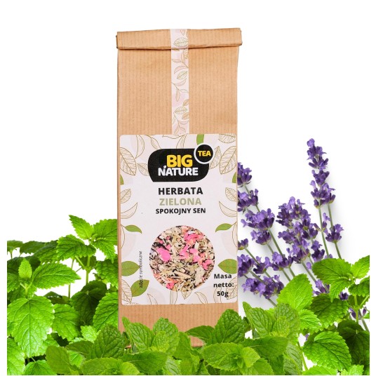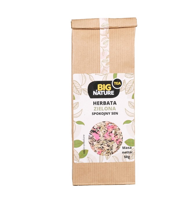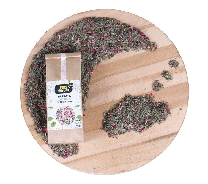 Opis: Opakowanie zawiera 50g zielonej herbaty "Spokojny Sen".