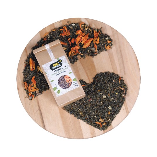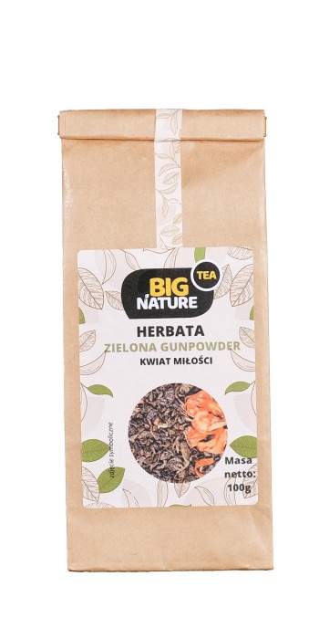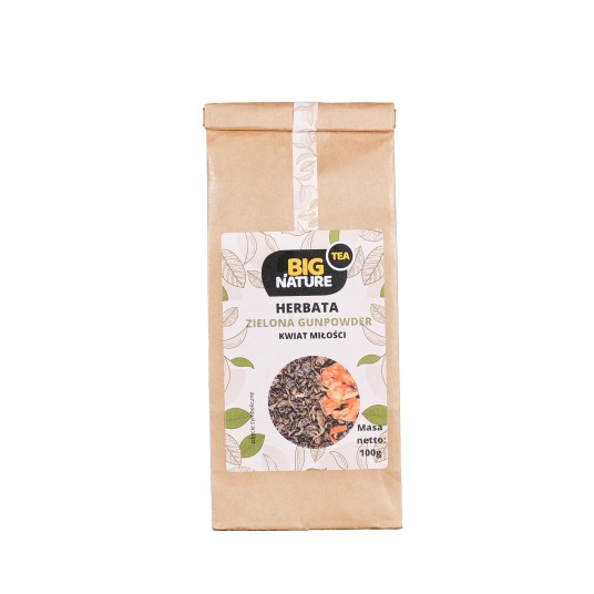 Opis: Opakowanie zawiera 100g zielonej herbaty gunpowder "Kwiat Miłości".