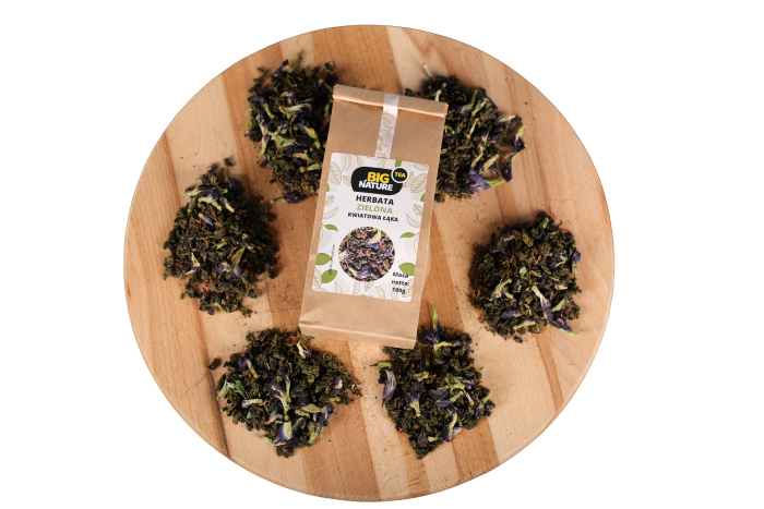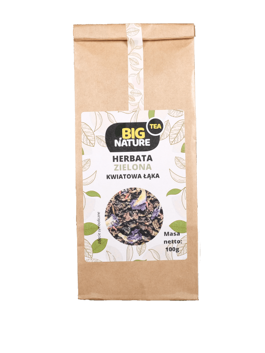 Opis: Opakowanie zawiera 100g zielonej herbaty oolong "Kwiatowa Łąka".