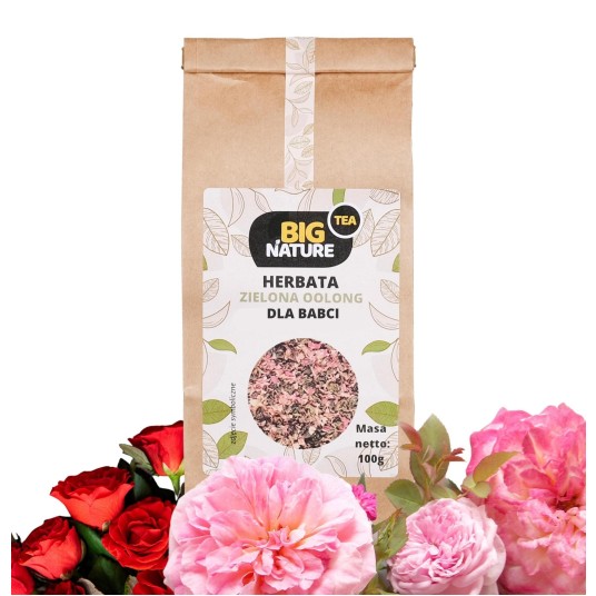 Opis: Opakowanie zawiera 100g zielonej herbaty oolong "Dla Babci".