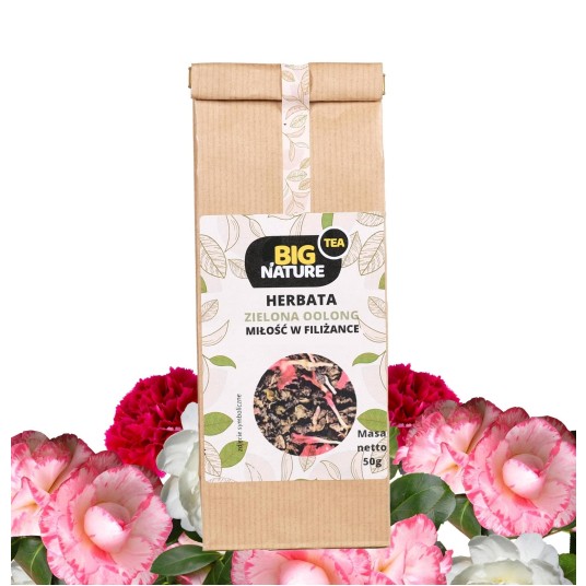 Opis: Opakowanie zawiera 50g zielonej herbaty oolong "Miłość w Filiżance".