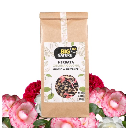 Opis: Opakowanie zawiera 100g zielonej herbaty oolong "Miłość w Filiżance".