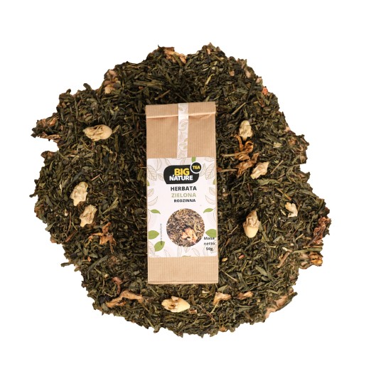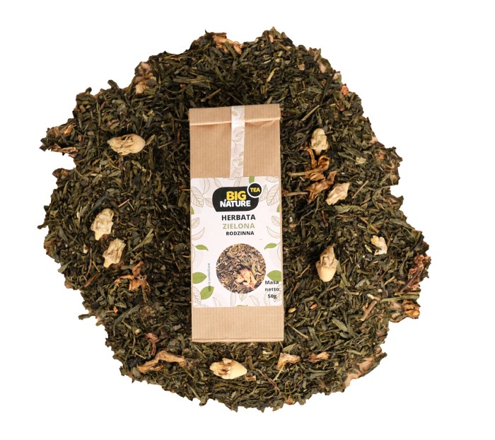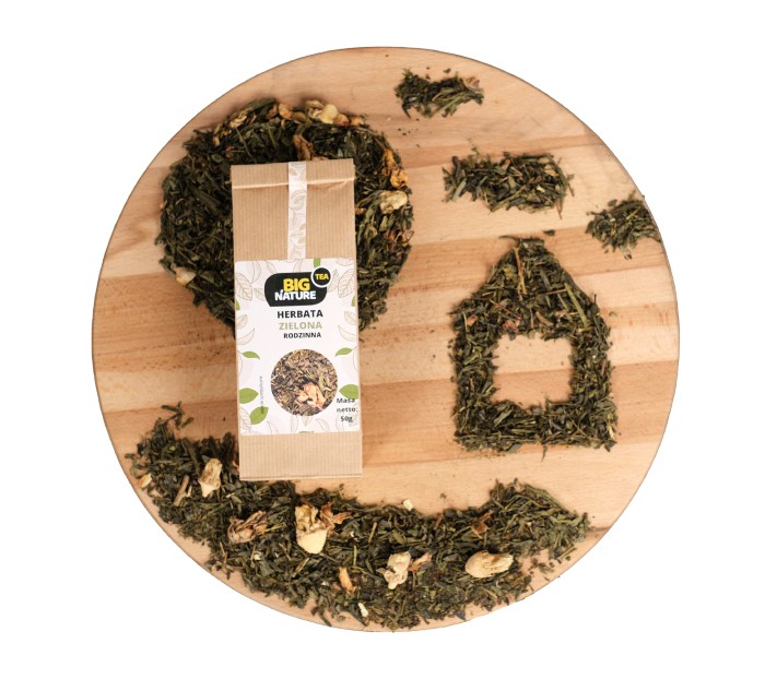Opis: Opakowanie zawiera 50g zielonej herbaty "Rodzinna".