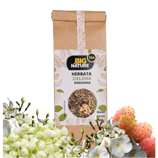 Herbata zielona z dodatkiem jaśminu, opuncji i gardenii poleca się na rodzinne spotkania. Wyjątkowości herbaty dodaje jaśminowo owocowy smak. Historia zielonej herbaty rozpoczyna się w XXVIII wieku p.n.e.. Jeden z cesarzy chińskich odpoczywając pod krzewem herbacianym, zauważył, iż kilka listków rośliny wpadło mu do miseczki z gorącą wodą. Gdy spróbował aromatycznego naparu, poczuł się nim zafascynowany. Zielona herbata jest zdrowsza od herbaty czarnej, a zarazem mniej popularna. W światowej produkcji zielonej herbaty dominują Chiny, kolejne są Japonia, Indonezja i Wietnam. Niesłodzona zielona herbata jest napojem o zerowej kaloryczności.