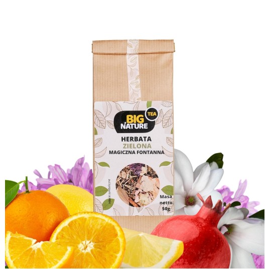 Opis: Opakowanie zawiera 50g zielonej herbaty "Magiczna Fontanna".