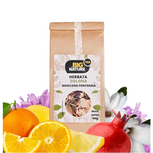 Opis: Opakowanie zawiera 100g zielonej herbaty "Magiczna Fontanna".