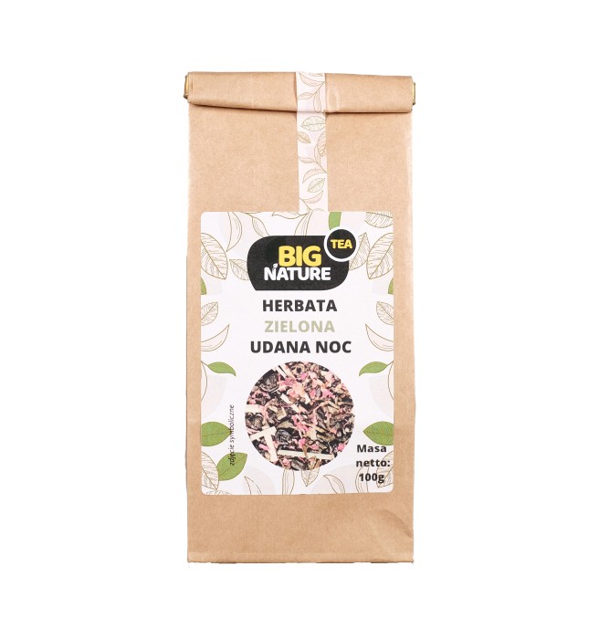Opis: Opakowanie zawiera 100g zielonej herbaty "Udana Noc".