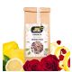 Składniki: herbata zielona, aromat, cytryna skórka, trawa cytrynowa, róża płatek