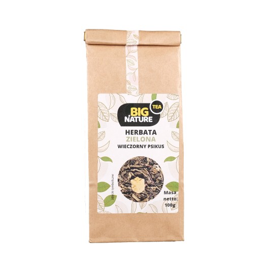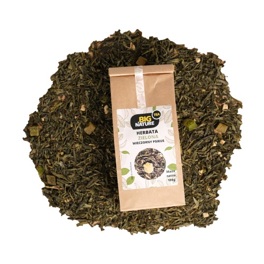 Opis: Opakowanie zawiera 100g zielonej herbaty "Wieczorny Psikus".