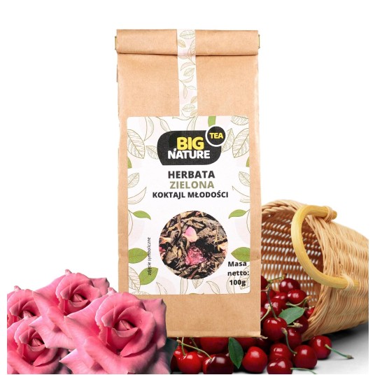 Opis: Opakowanie zawiera 100g zielonej herbaty "Koktajl Młodości".