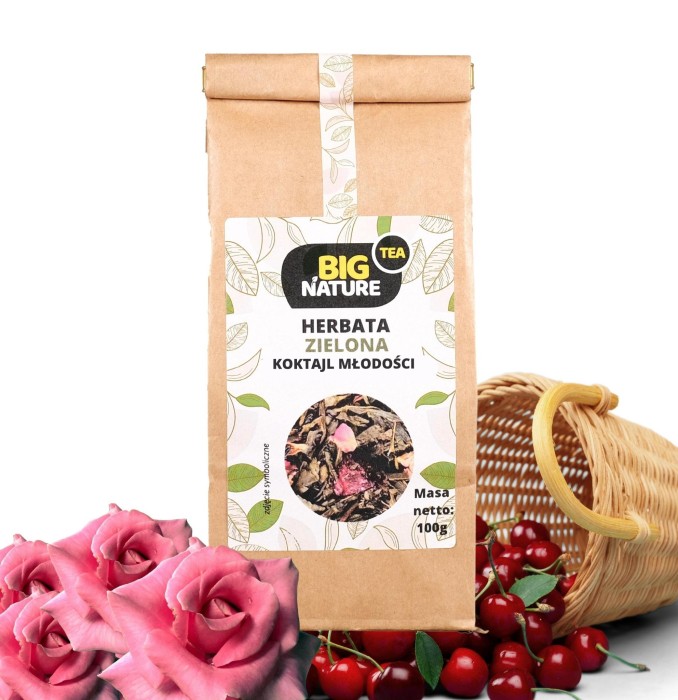 Opis: Opakowanie zawiera 100g zielonej herbaty "Koktajl Młodości".