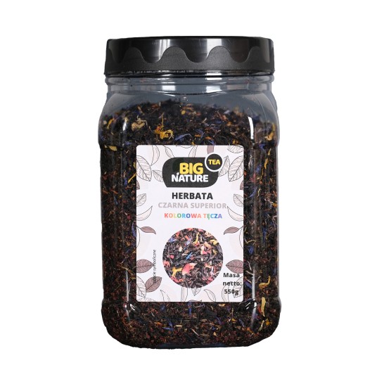 Opis: Opakowanie zawiera 550g czarnej herbaty earl grey "Kolorowa Tęcza".