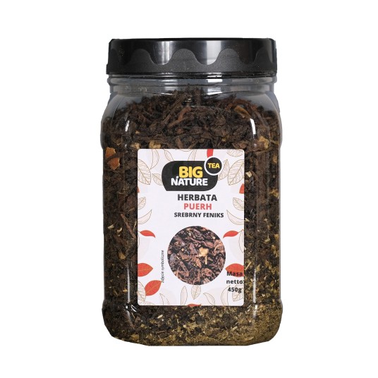 Opis: Opakowanie zawiera 450g herbaty "Puerh Srebrny Feniks".