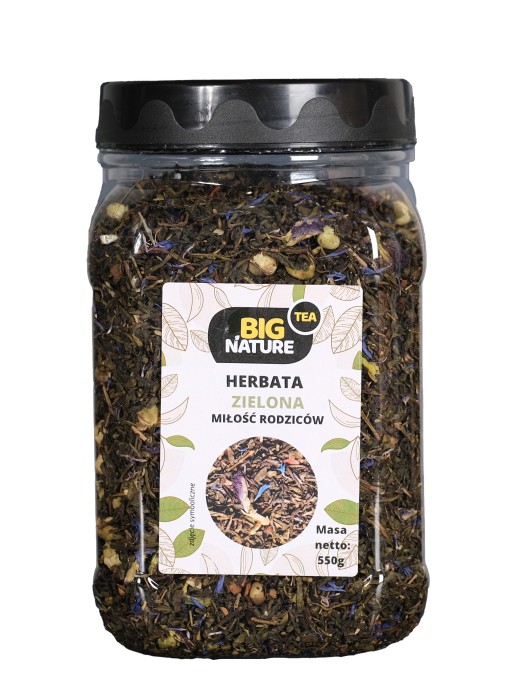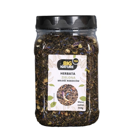 Opis: Opakowanie zawiera 550g zielonej herbaty "Miłość Rodziców".